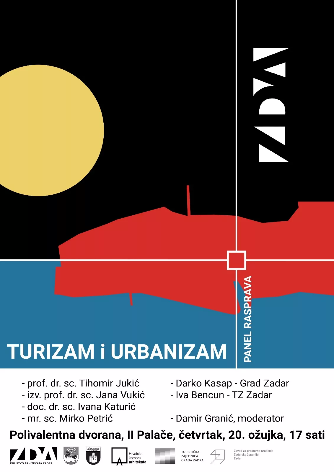 Društvo arhitekata Zadra (ZDA) i Odbor za urbanizam ZDA pozivaju na završni događaj ciklusa predavanja Turizam & Urbanizam – panel raspravu koja će se održati u četvrtak, 20. ožujka u polivalentnoj dvorani Dvije palače, s početkom u 17 sati.