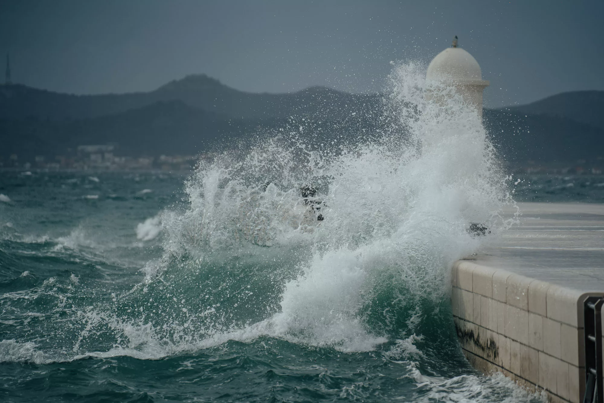 Još manji dnevni hod temperature zraka bit će na krajnjem jugu Hrvatske, uglavnom između 14 i 16 °C. Prevladavat će oblačno, povremeno s kišom i grmljavinom te mjestimice obilnim oborinom. Puhat će i dalje jako i olujno jugo pa će more biti valovito i jače valovito.