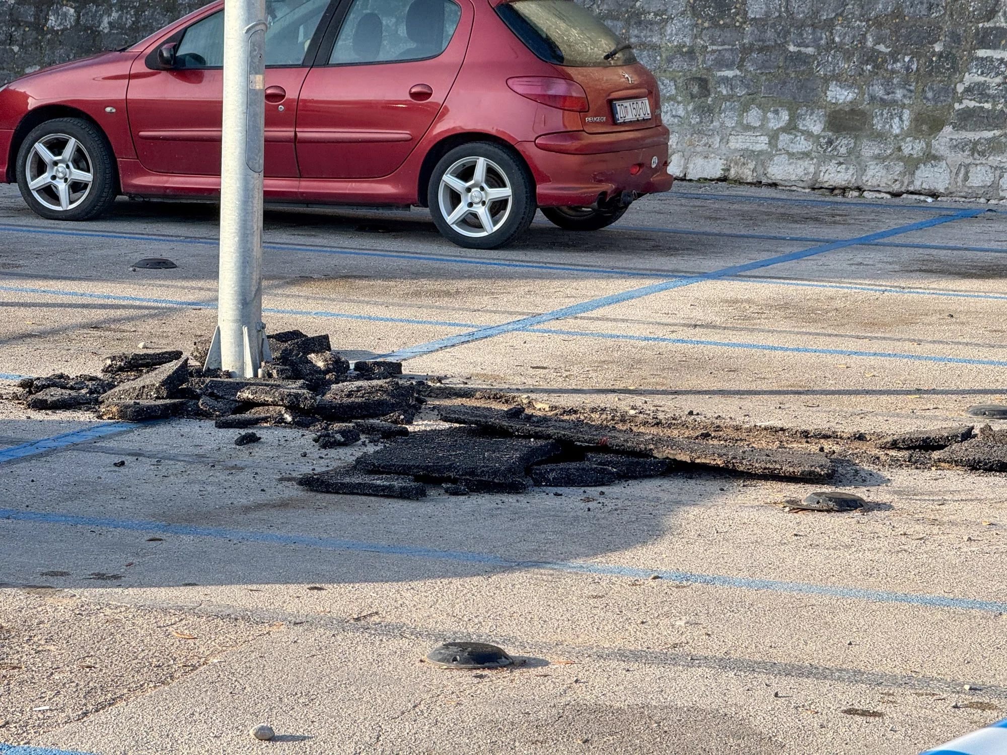 Nakon što su početkom prosinca prošle godine obavljeni radovi na postavljanju osvjetljenja na parkiralištu kod mosta, konkretno kod Plana grada, ostavljena situacija sa zakrpama izazvala je negodovanje građana.
