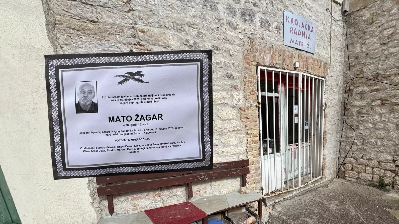 U 78. godini života preminuo je Mato Žagar, zadarski krojač i legenda Varoši. Njegovu radnju, smještenu iza Suda, znali su svi, a njezina vrata bila su otvorena od 1997. godine.