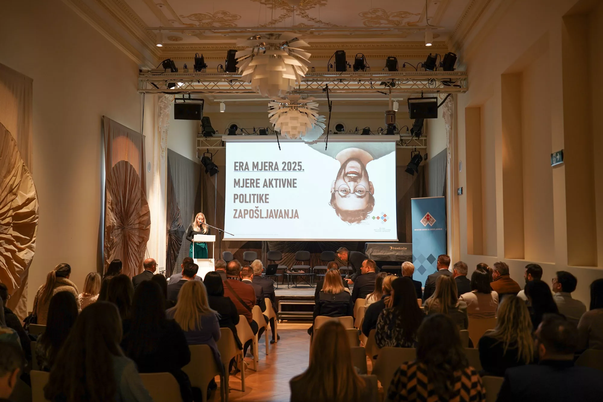 Mjere aktivne politike zapošljavanja prezentirao je Vjekoslav Špoljarić, savjetnik ministra rada mirovinskoga sustava, obitelji i socijalne politike, naglasivši kako smo prošlu godinu završili sa rekordno visokom stopom zaposlenosti, nezaposlenošću od 4,4 posto, brojem osiguranika koji nadmašuje 1,7 milijuna, te rastom minimalne plaće preko 800 eura.