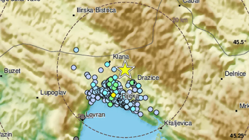 Potres jačine 2,0 prema Richteru zatresao je u subotu u 12:17 Rijeku i okolicu. Prema EMSC-u, epicentar potresa bio je 12 km sjeverno od Rijeke.