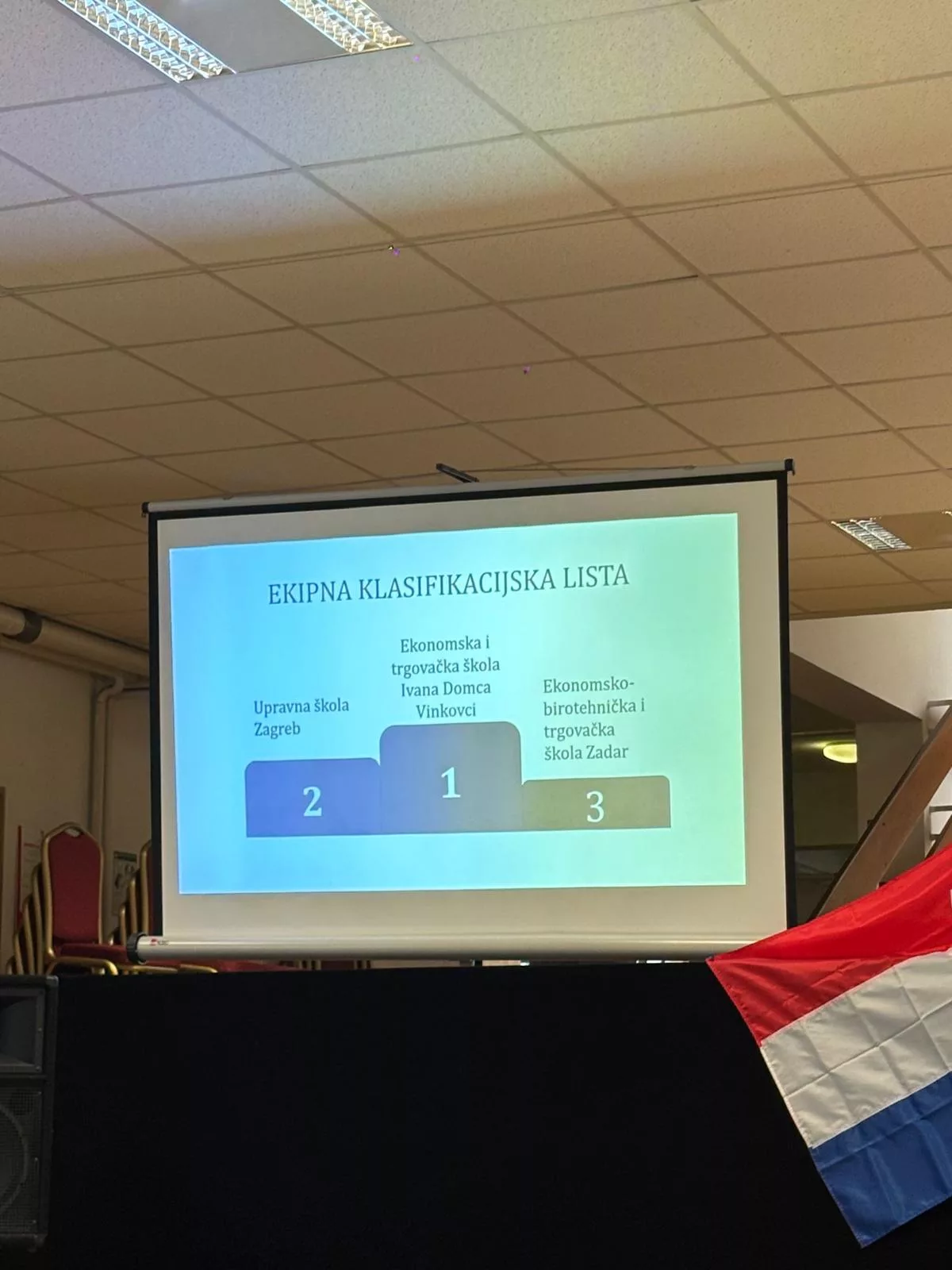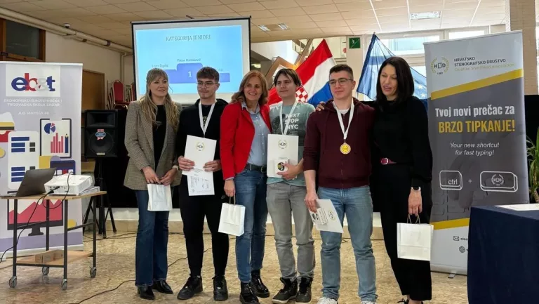 Najbolji rezultat u pojedinačnoj konkurenciji ostvario je Viktor Matraković iz Bjelovara s impresivnih 532 znaka u minuti uz majstorski savršenu točnost. Iza njega uslijedili su Lovro Župčić iz Karlovca i Emanul Brkić iz Vinkovaca. Najbolji rezultat i 5. mjesto iz naše škole osvojio je učenik Šime Bobić. U ekipnoj konkurenciji pobjedu je odnijela ekipa Ekonomske i trgovačke škole iz Vinkovaca koja je dokazala da timski rad i predanost donose izvrsne rezultate. Iza njih slijedila je Upravna škola Zagreb a Ekonomsko-birotehnička i trgovačka škola iz Zadra zauzela je visoko 3. mjesto.
