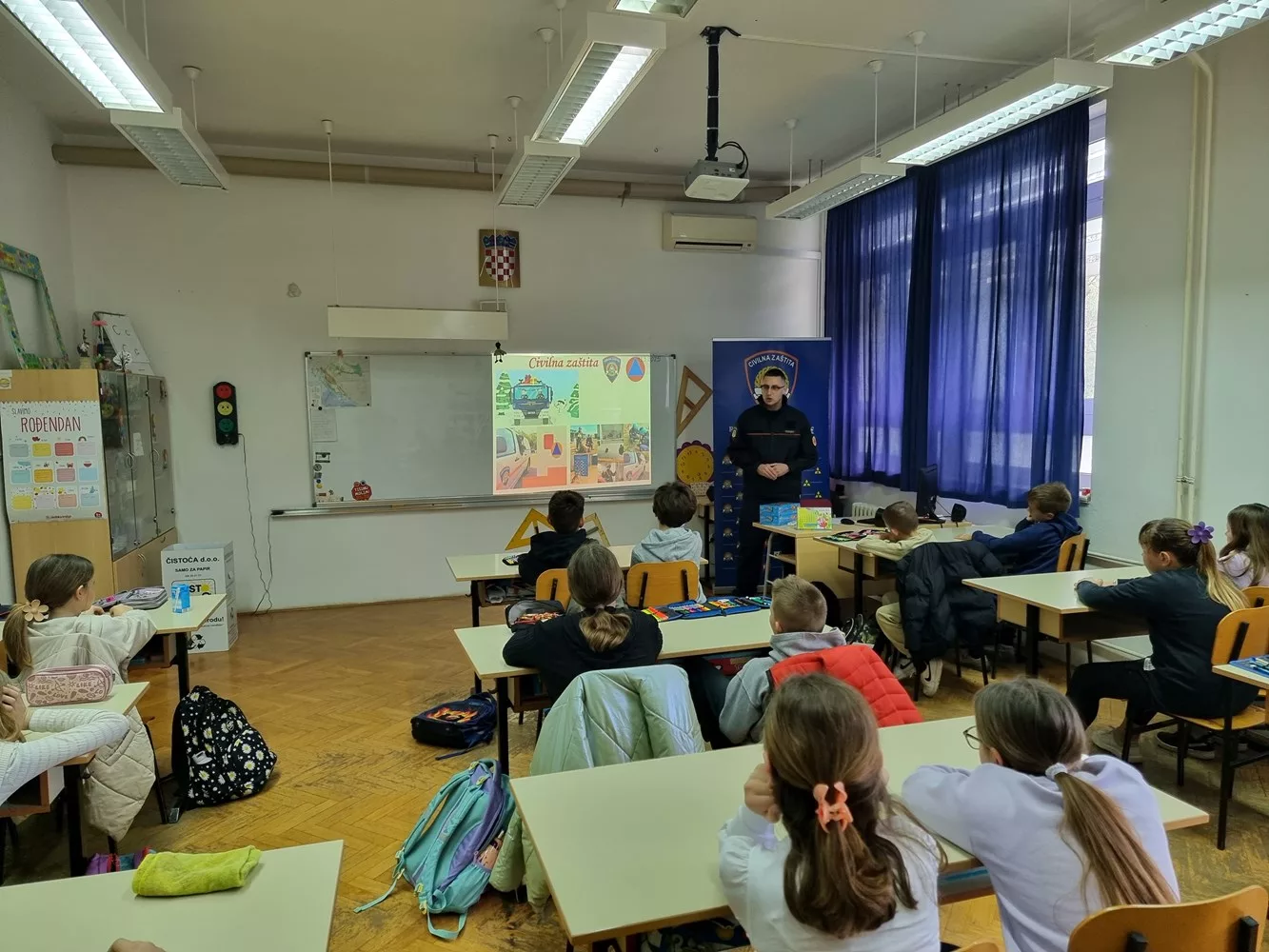Djelatnici Službe civilne zaštite Zadar proveli su jučer edukaciju za 130 učenika Osnovne škole „Vladimir Nazor“ Neviđane o potencijalnim rizicima koji nastaju usred prirodnih katastrofa i drugih velikih nesreća te kako postupati u takvim slučajevima.
