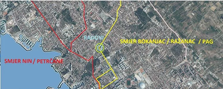 Također, bit će zatvoren dio Puta Nina iz smjera Žmirića, neposredno prije raskrižja, a vozila će se preusmjeravati na Put Petrića.