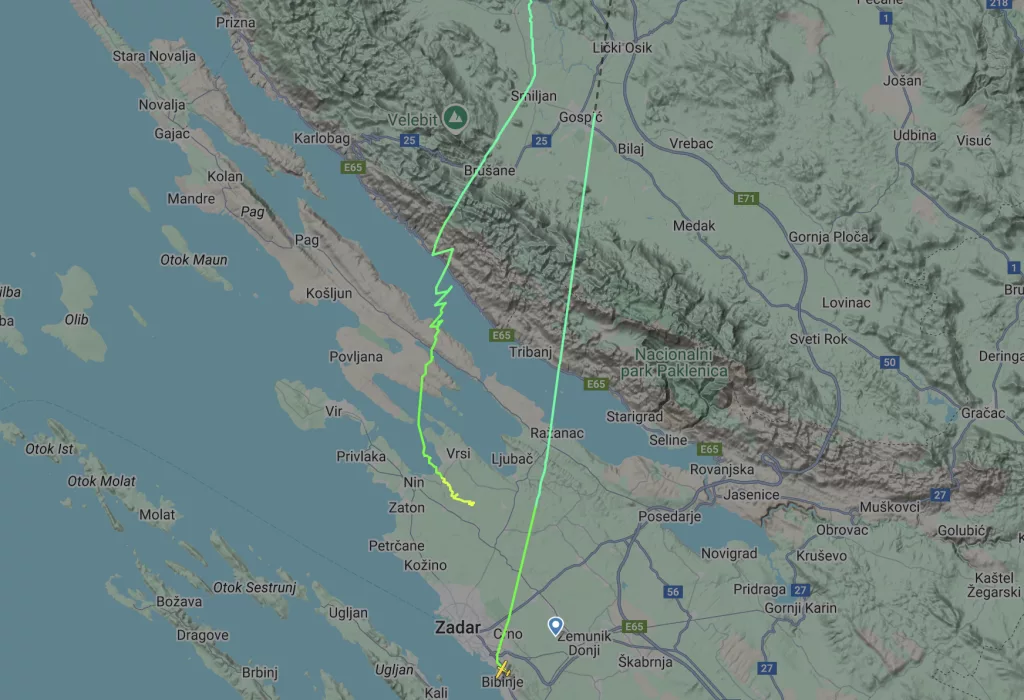 Kako smo ranije izvijestili, manji zrakoplov sletio je danas u 14:12 sati na livadu u blizini Ninskih Stanova, a prava drama odvijala se na nebu iznad Velebita.