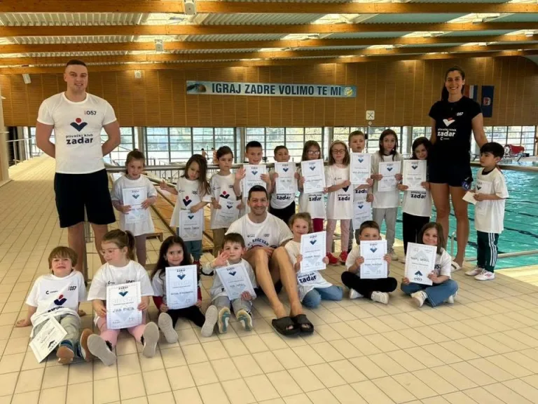 Nakon tjedana učenja, prskanja i razbijanja strahova od vode, program „Obuke neplivača“ uspješno je priveden kraju. U subotu 12.04.2025. na bazenu Šc Višnjik je održan zadnji – pokazni sat za dvije grupe iz programa Obuke neplivača. Plivački klub Zadar nakon odrađenih 16 treninga programa, s ponosom predstavlja 19 novih plivača koji su hrabro zakoračili u svijet plivanja.