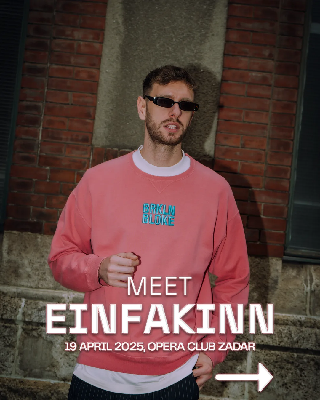 Ovoga puta naglasak je stavljen na kombinaciju regionalnog i lokalnog – u goste stiže EINFAKINN, DJ i producent iz Zagreba koji posljednjih godina nastupa na raznim festivalima i klupskim večerima diljem Hrvatske.