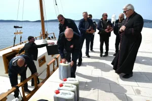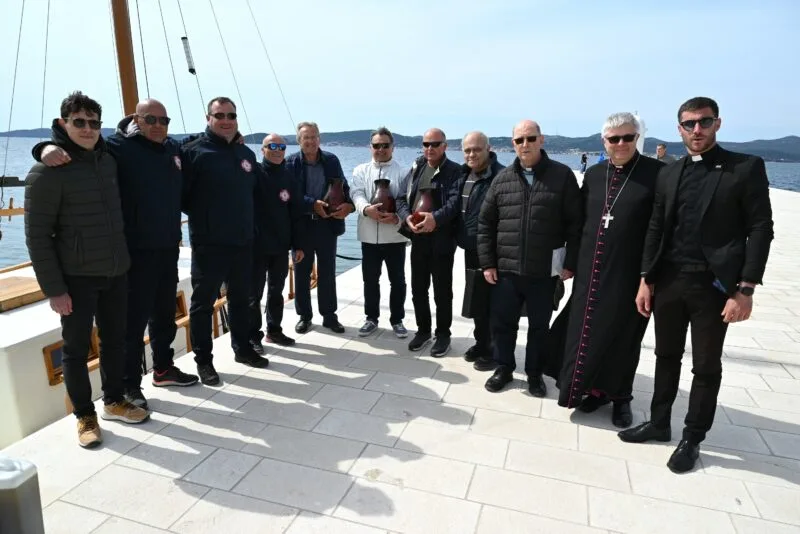 Dugootočani su dovezli oko 70 litara ulja leutom ‘Marijeto’ iz Sali, čiji je vlasnik Ivica Orlić. Nakon dvosatne plovidbe do Zadra, na gatu zadarske rive dočekao ih je zadarski nadbiskup Milan Zgrablić.