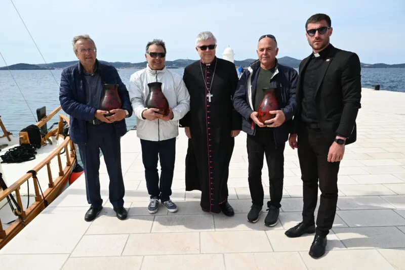 Dugootočani su dovezli oko 70 litara ulja leutom ‘Marijeto’ iz Sali, čiji je vlasnik Ivica Orlić. Nakon dvosatne plovidbe do Zadra, na gatu zadarske rive dočekao ih je zadarski nadbiskup Milan Zgrablić.