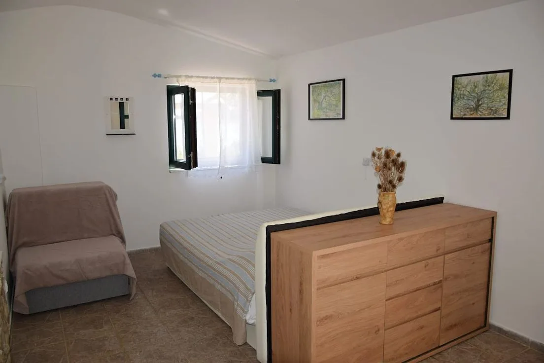 Ova šarmantna kućica, svega dva metra udaljena od mora, idealna je za sve koji žele istinski predah i povezanost s prirodom. Iako nije spojena na struju ni na vodovodnu mrežu, opremljena je solarnim sustavom te spremnicima za kišnicu, što omogućuje potpuno održiv boravak.