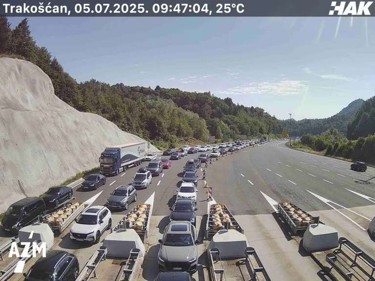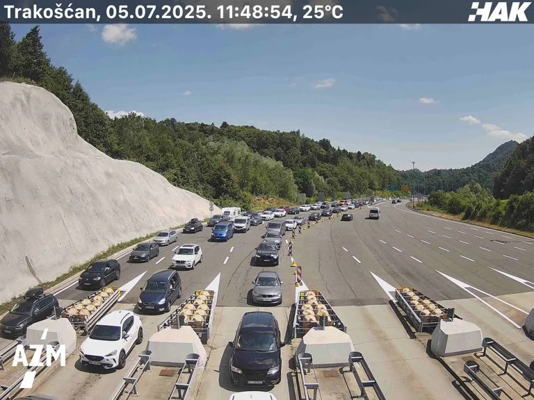 Zbog povećanog priljeva vozila kolona na naplati Trakošćan u smjeru Zagreba proteže se u Sloveniju (6 km).