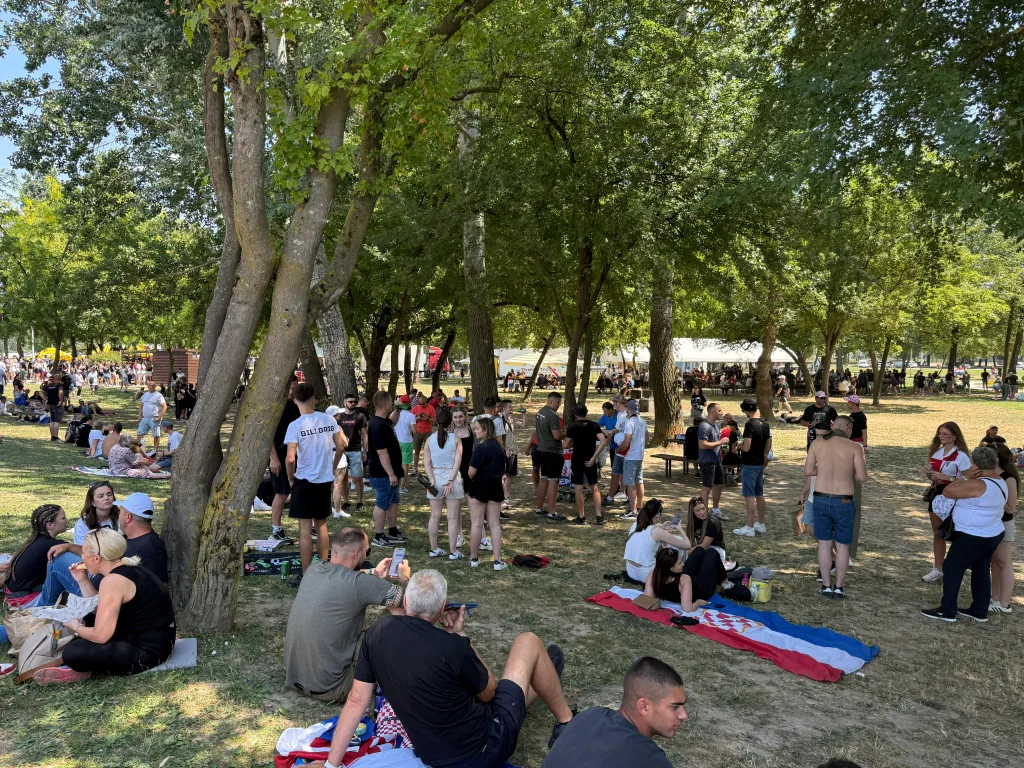 Otvoreni su ulazi na zagrebački Hipodrom. Ispred VIP ulaza nastala je gužva. Ljudi traže svaki komadić hlada.