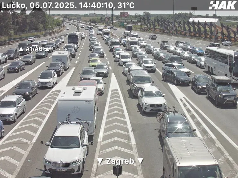 Kod NP Lučko u oba smjera i Demerje u smjeru Zagreba nema dužih čekanja, povećana gustoća prometa između naplate Lučko i čvora Zadar istok u smjeru Dubrovnika kolona u pokretu uz zastoje između čvorova Karlovac i Bosiljevo II u smjeru Dubrovnika.