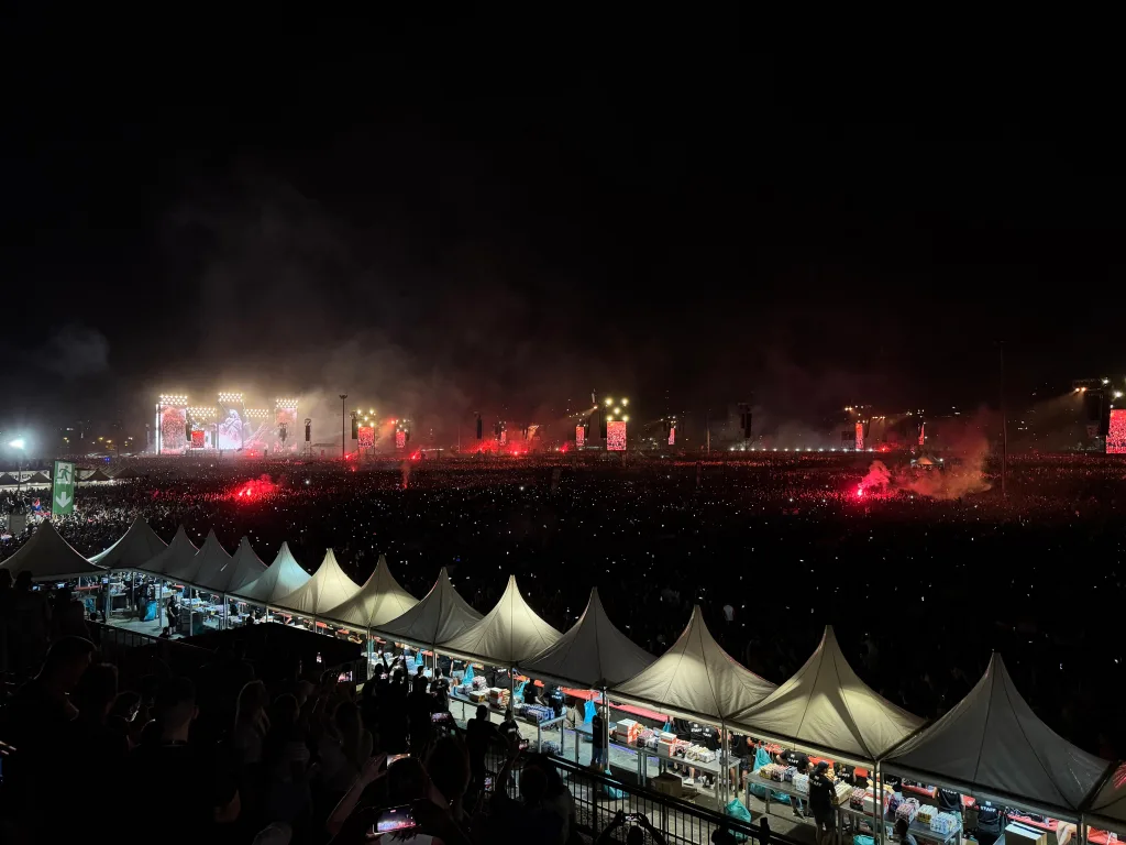 Ljubitelji slatkog za sladoled će morati izdvojiti 8 eura, dok sendvič košta isto toliko. Kokice su 6 eura, a energetska pločica 4 eura. Posebnu pozornost privlače suveniri – majica s motivom koncerta stoji čak 37 eura, dok se suvenir-čaša prodaje za 2 eura.