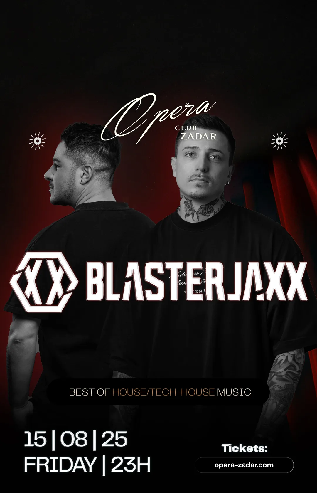 U nekoliko zadnjih mjeseci zaredala su se gostovanja eminentnih europskih DJ-a i evenata u organizaciji hrvatskih, a poglavito zadarskih glazbenih brendova. Pred nama je ovog vikenda također jedno veliko međunarodno gostovanje u klubu Opera, u petak, 15. kolovoza stiže svjetski poznati nizozemski DJ dvojac Blasterjaxx, pravi mali dašak Ultre ili Tomorrowlanda u Zadru.