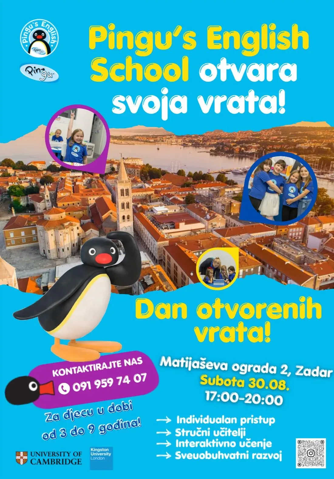 Pingu’s English program razvijen je u suradnji s Cambridge English i Kingston University London, a već godinama uspješno djeluje u više od 30 zemalja svijeta. U Hrvatskoj je prisutan na nekoliko lokacija, a od ovog ljeta dolazi i u Zadar.