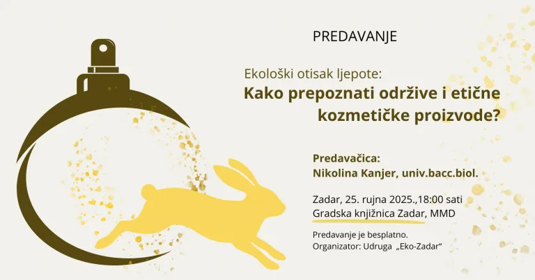 Kako prepoznati održive i etične kozmetičke proizvode tema je predavanja kojeg će održati Nikolina Kanjer, univ.bacc.biol. Predavanje će se održati u Zadru, 25. rujna 2025. u 18:00 sati u Gradskoj knjižnici Zadar.