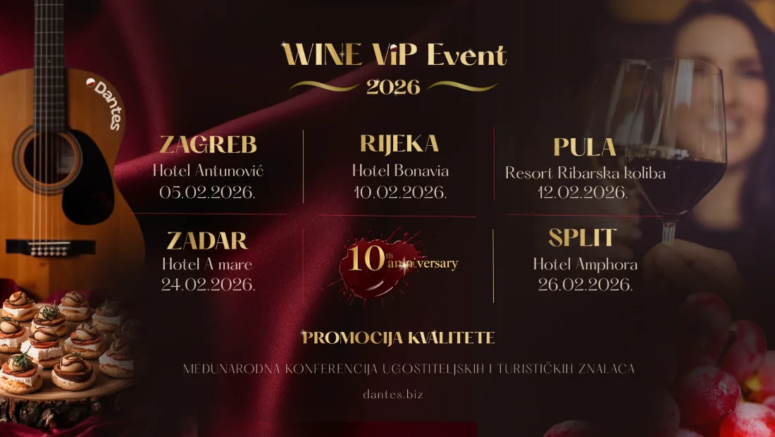 Wine ViP Event, prepoznat kao jedno od najposebnijih okupljanja ugostitelja, chefova, vinara i ljubitelja gastronomije u Hrvatskoj, u 2026. godini slavi svoj deseti jubilej. Deset godina strasti, posvećenosti i vizije okupljanja ponajboljih ljudi iz ugostiteljstva i turizma, kako bi zajedno gradili kulturu izvrsnosti i unaprijedili eno-gastronomsku ponudu naše zemlje.