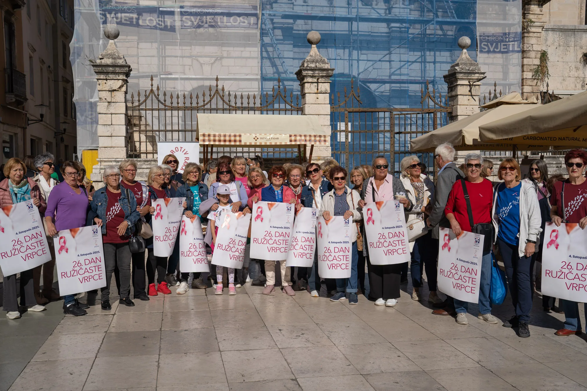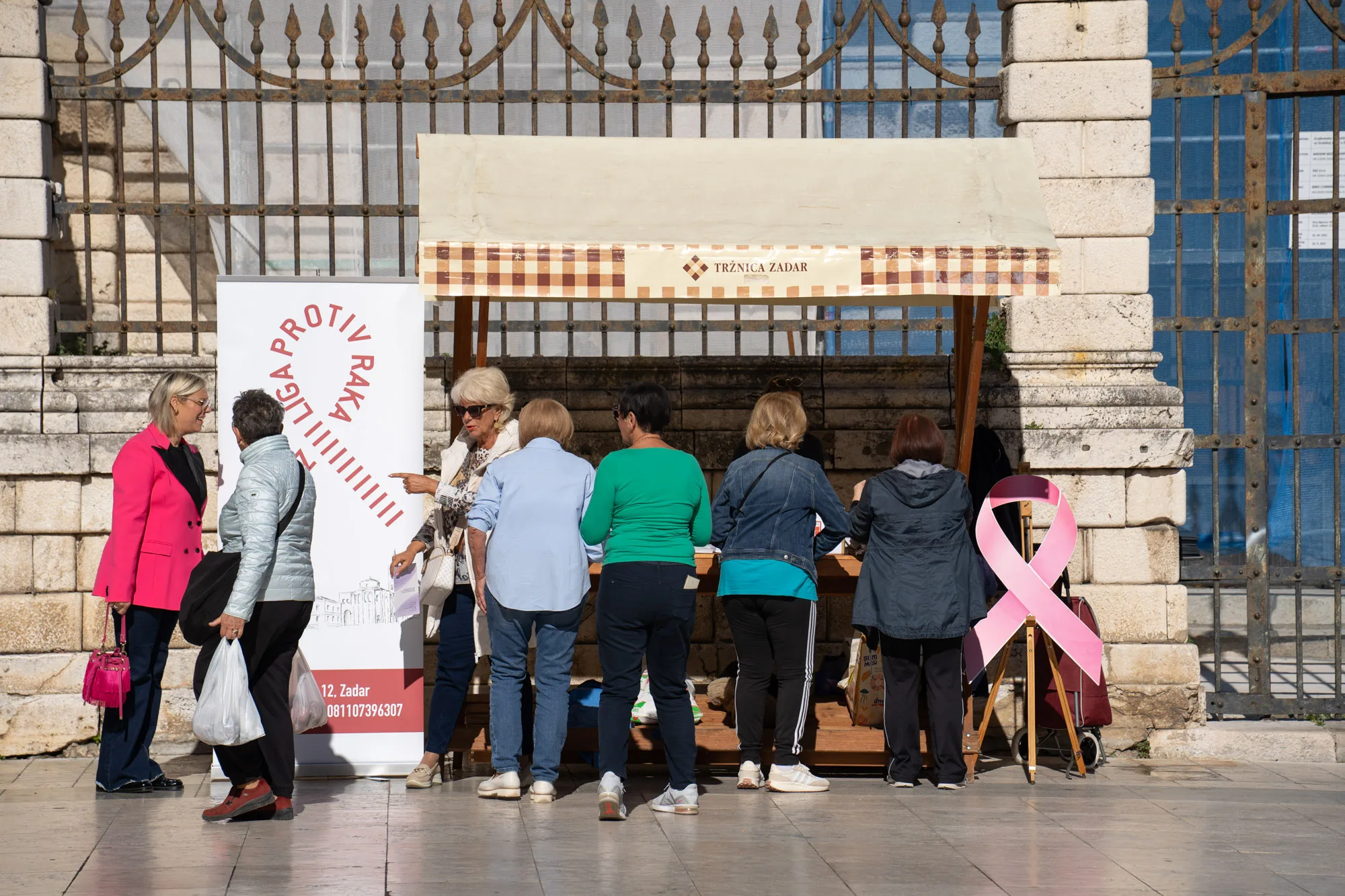 Na Narodnom trgu u Zadru ovu je subotu obilježen Dan ružičaste vrpce, međunarodna akcija posvećena podizanju svijesti o važnosti prevencije i ranog otkrivanja raka dojke.