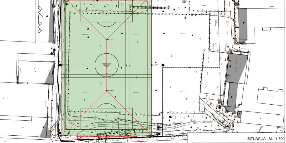 Igralište će biti ograđeno zaštitnom ogradom visine 2,2 metra, dok će iza golova na sjeveroistočnoj i jugozapadnoj strani biti postavljene zaštitne mreže visine šest metara. Na prostoru će biti instalirana moderna sportska rasvjeta koja uključuje šest metalnih stupova visine 18 metara, na kojima će se nalaziti ukupno četrdeset i osam LED reflektora raspoređenih u dvije razine.