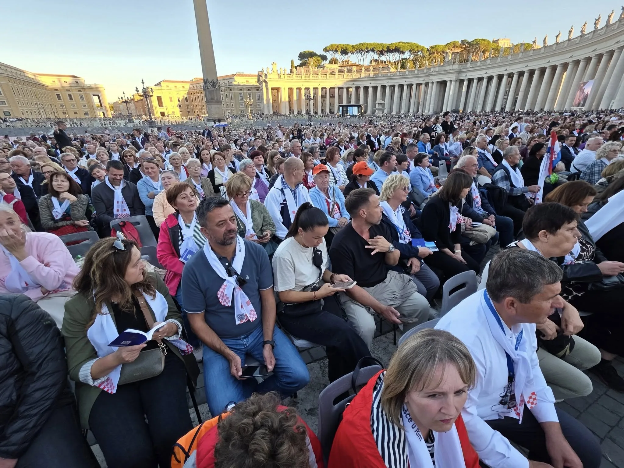 Papa je poželio dobrodošlicu Hrvatima kojih se desetak tisuća okupilo na Trgu sv. Petra u Vatikanu i poručio im da je svjestan da je hrvatski narod “tijekom stoljeća ostao čvrst i u zajedništvu s crkvom”, zahvaljujući tome što “korijeni vaše vjere nisu ostali nepomični u prošlosti nego nastavljaju donositi plodove i danas”, ocijenio je, piše Index.