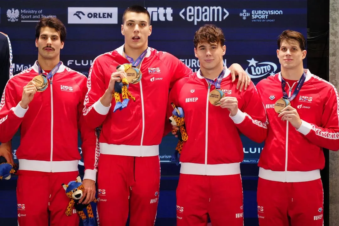Hrvatska štafeta 4 X 50m slobodno, u sastavu Jere Hribar, Nikola Miljenić, Božo Puhalović, Luka Cvetko ima brončanu medalju sa Europskog prvenstva u Poljskom Lublinu!