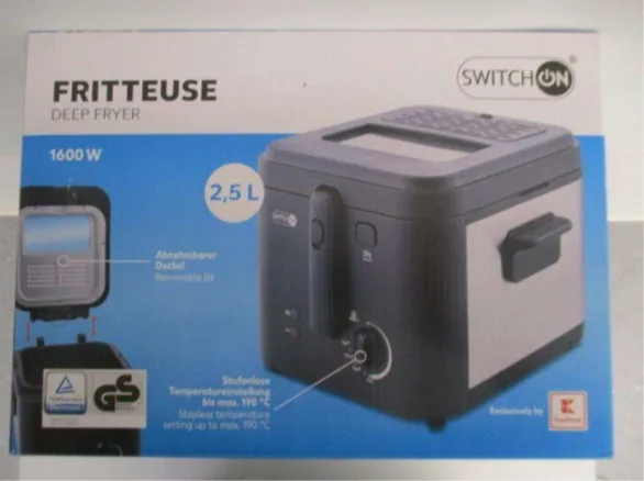 Riječ je o Fritezi na ulje serijskog broja 1267663-5221, DF-G0201. Robna marka je Switch ON. Proizvođač je Kaufland u Njemačkoj, a distributer hrvatski Kaufland. Zemlja podrijetla proizvoda je Kina.