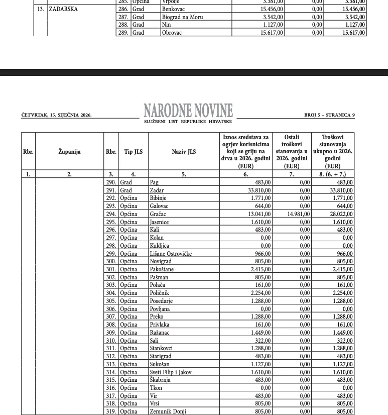 Evo kako su sredstva raspoređena za gradove i općine u Zadarskoj županiji: