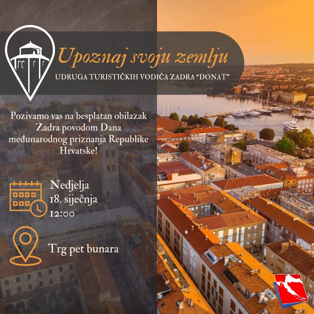 I ove godine Udruga turističkih vodiča Zadra “Donat” prigodno obilježava Dan međunarodnog priznanja RH.