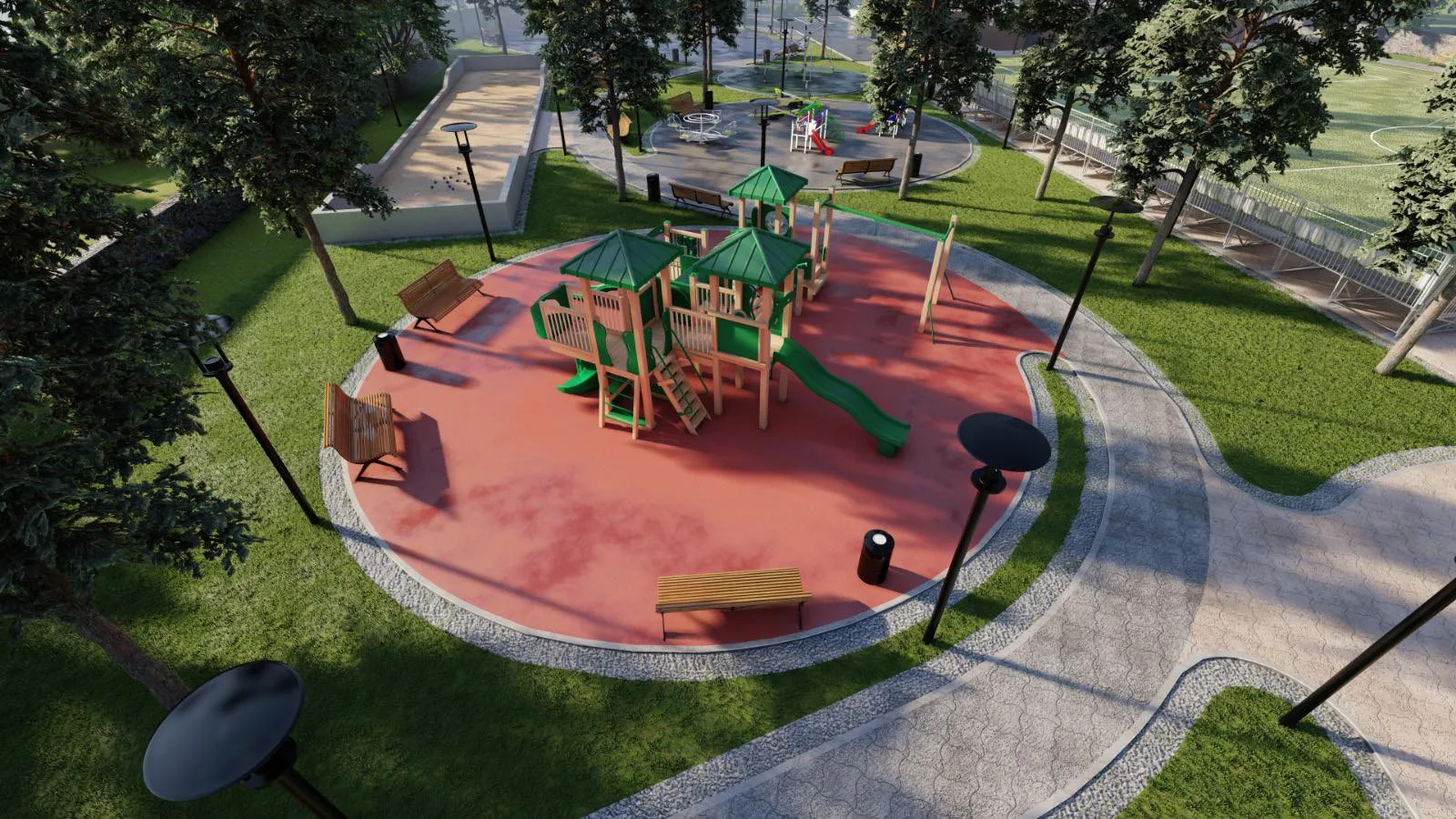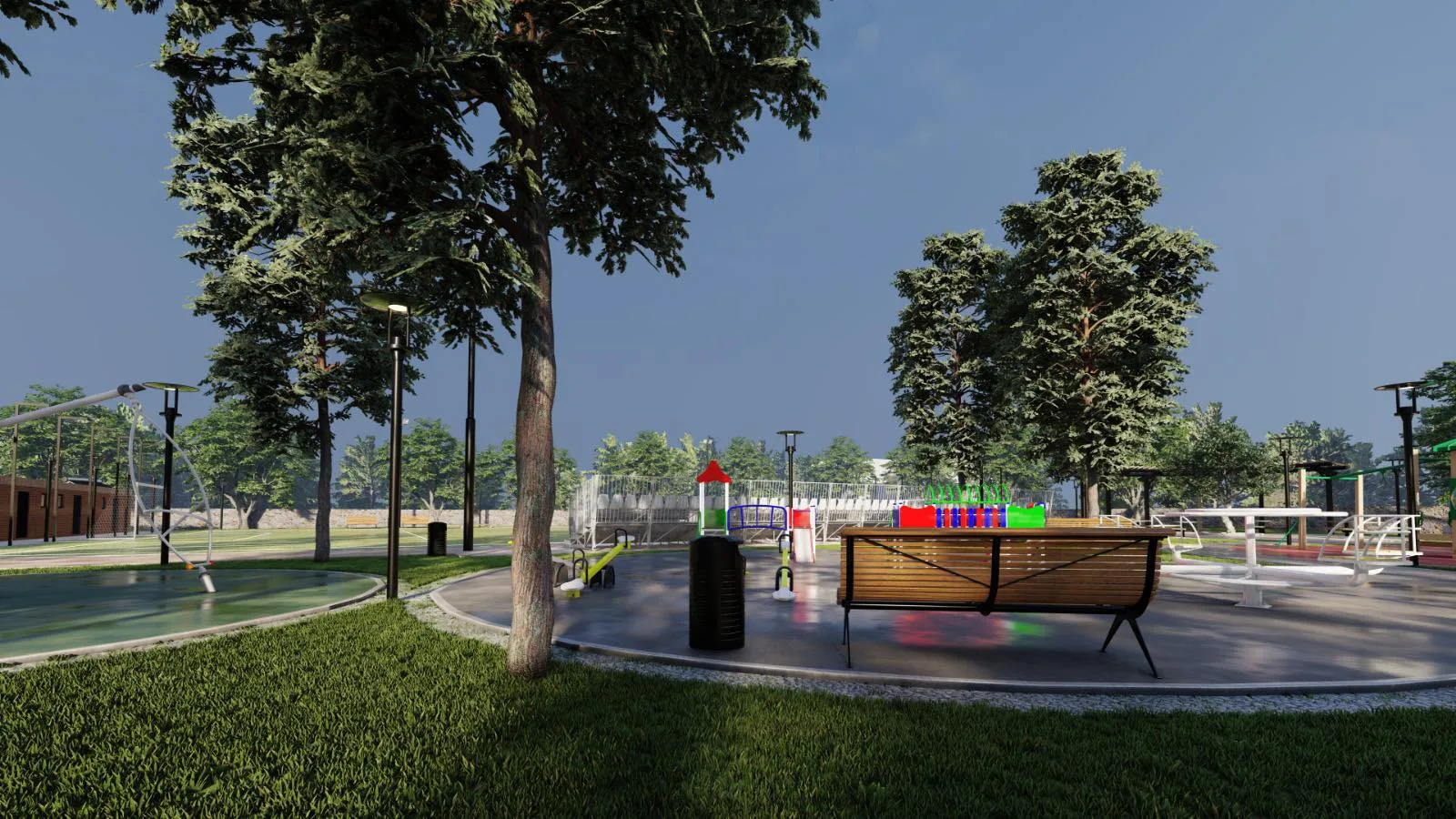 U jugozapadnom dijelu zone uredit će se park s dječjim igralištem opremljenim spravama, boćalište te prostor za druženje. Cijeli prostor bit će povezan šetnicama koje se protežu od zapadnog do južnog dijela parka te ozelenjen autohtonim drvećem, grmljem i ukrasnim biljem. Za potrebe posjetitelja i korisnika igrališta planiran je i poseban parkirališni prostor uz novu cestu na sjeverozapadnoj strani.