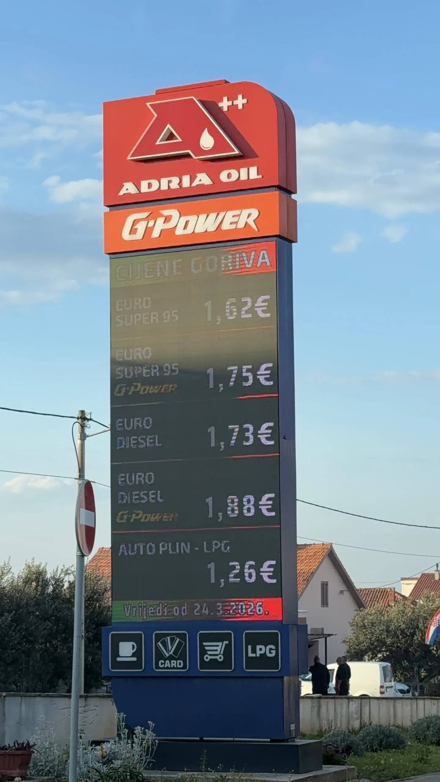 Fotografije s terena potvrđuju primjenu novih mjera prema kojima litra osnovnog eurosupera 95 na svim navedenim postajama iznosi 1,62 eura, dok osnovni eurodizel košta 1,73 eura. Na postaji Tri Bartola zabilježena je regulirana cijena plavog dizela od 1,19 eura po litri. Razlike se bilježe kod autoplina (LPG) koji na Shellu košta 1,12 eura, kod Tri Bartola 1,24 eura, dok ga Petrol i Adria Oil prodaju za 1,26 eura po litri.