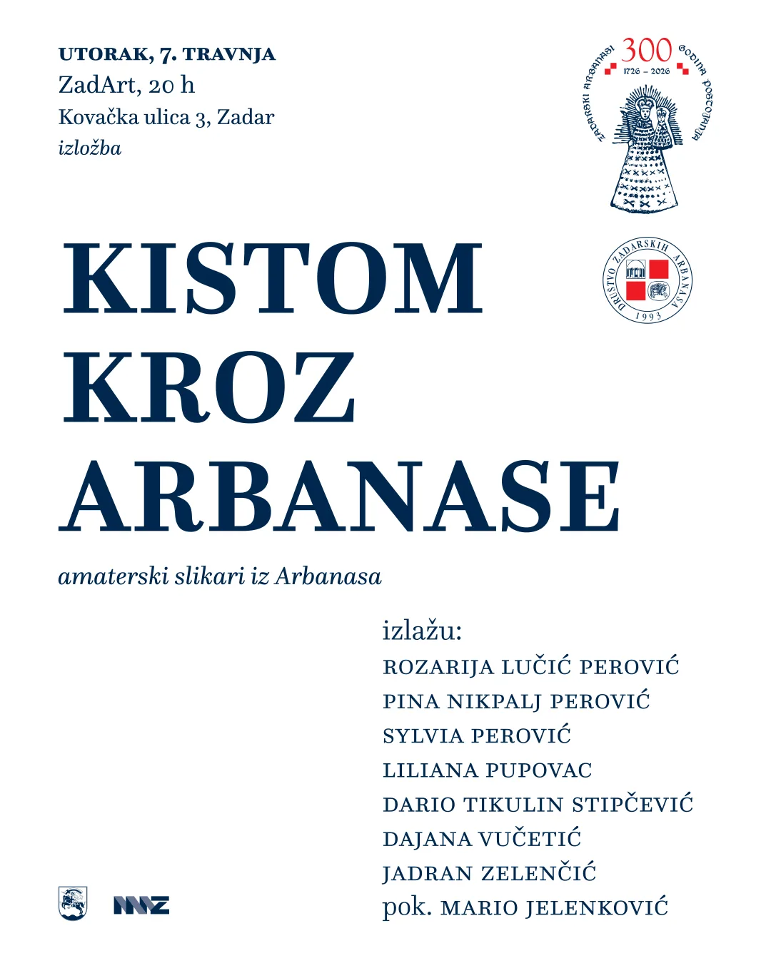 U sklopu obilježavanja 300 godina Arbanasa, u utorak, 7. travnja 2026. s početkom u 20 sati u prostoru ZadArta (Kovačka ulica 3) bit će otvorena izložba „Kistom kroz Arbanase“.