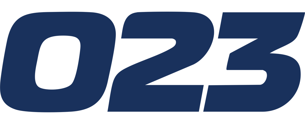Logotip 023.hr temelji se na robusnoj, ukošenoj tipografiji (Impact) koja sugerira brzinu, modernost i informativnost portala.